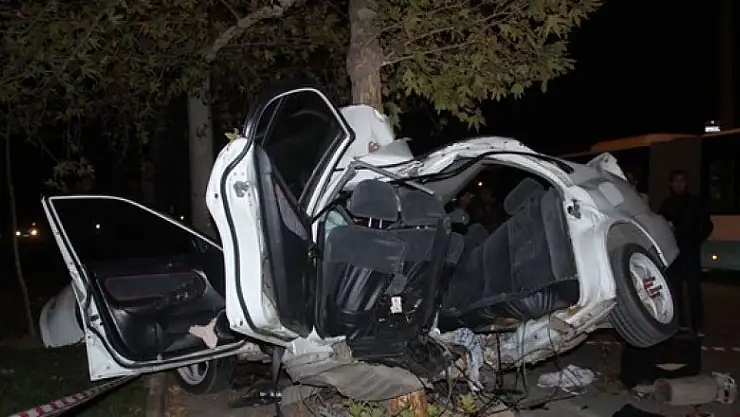 Konya'da ağaca çarpan otomobil bu hale geldi