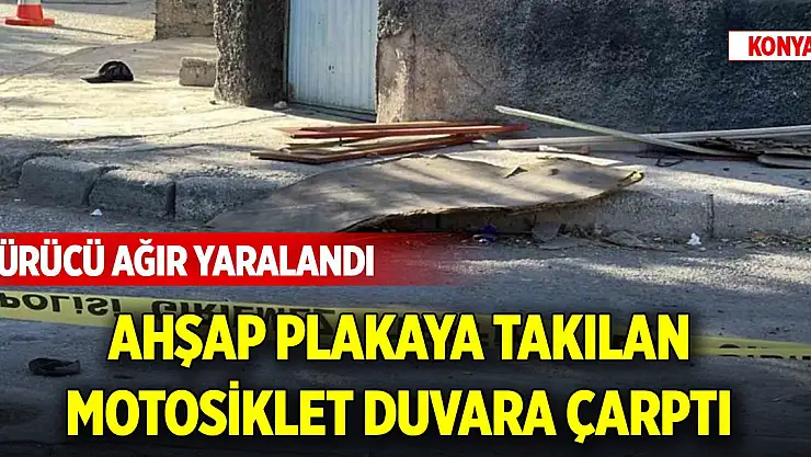 Konya'da sokak üzerinde motosiklet ile seyir halinde olan bir kişi, motosikletin kaldırımdan uzanan ahşap plakaya takılıp kaza yapması sonu ağır yaralandı.