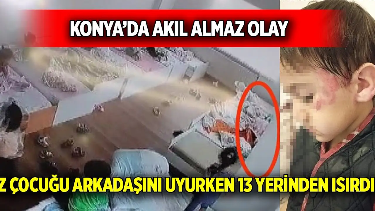 Konya'da özel bir anaokulunun uyku odasında M.U.S. (4) adlı kız çocuğu, yanındaki yatakta uyuyan B.C. (3) adındaki erkek çocuğuna saldırıp, vücudunun 13 yerinden ısırdı. O anlar güvenlik kamerasına yansırken, B.C. öğretmenlerin müdahalesi ile kurtarıldı.