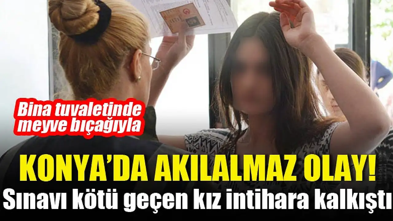 KONYA'da Yükseköğretim Kurumları Sınavı'nın (YKS) dün yapılan birinci oturumu başarısız geçen R.B. (18) adlı kız öğrenci, bugün ikinci oturuma gireceği binanın tuvaletinde meyve bıçağını karnına saplayarak intihara kalkıştı.