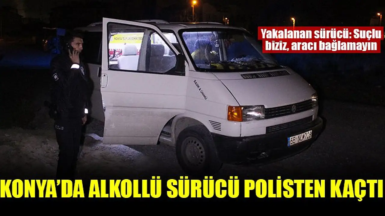 Konya Emniyet Müdürlüğü Trafik Denetleme Şube Müdürlüğü ekipleri, merkez Selçuklu ilçesi Dr. Sadık Ahmet Caddesi üzerinde kontrol yaptı. Ekipler, şüphe üzerine 55 NJ 728 plakalı minibüsün sürücüsü Ali Osman Y.'ye, 'Dur' ihtarında bulundu. Ali Osman Y., uyarıyı dikkate almayıp, polislerden kaçmaya başladı. Yaklaşık 50 kilometre kaçan sürücü, Selçuklu ilçesi Hanaybaşı Mahallesi Bakiye Sokak'ta kovalamaca sonucu yakalandı. Ali Osman Y. ve yanındaki arkadaşı Osman Ö. araçtan indirildi. Yapılan testte 1.08 promil alkollü çıkan Ali Osman Y., minibüsünün çekileceğini öğrenince polislere, "Bu aracın normalde bir eksiği var mı ağabey? Suçlu biziz. Aracın ne suçu var? Aracı bağlamayın" dedi. Ali Osman Y.'ye, 'hız ihlali', 'kırmızı ışıkta geçmek', 'alkollü araç kullanmak', 'Dur' ihtarına uymamak' ve 'trafiği tehlikeye düşürmek' suçlarından 5 bin liralık idari para cezası kesildi. Minibüs ise emniyet otoparkına çekildi.