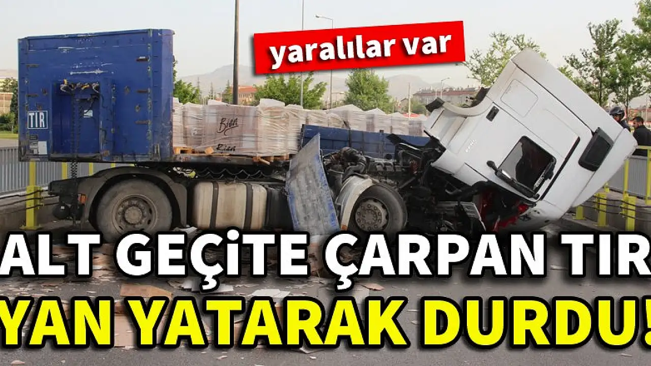 Konya'da alt geçide çarpan tır yan yatarak durdu!