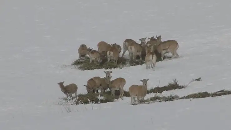 Konya'daki Bozdağ Yaban Hayatı Geliştirme Sahası'nda yer alan Anadolu yaban koyunları için yemleme çalışması yapıldığı bildirildi.