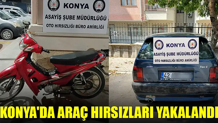 Konya Emniyet Müdürlüğü ekipleri otomobil ve motosikleti çalarak kayıplara karışan hırsızları yakalayarak gözaltına aldı. Adliyeye sevk edilen 2 şahıs tutuklandı. Çalınan araçlar polis ekipleri tarafından sahiplerine teslim edildi.
