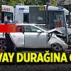 Nedeni henüz belirlenemeyen kazada otomobil, Binkonutlar tramvay durağının girişine çarptı. Bir yaralının olduğu söylenen kaza hakkında araştırmalar sürüyor.