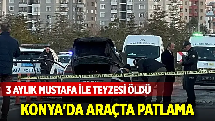 Konya'da, hastaneden çıkan bir ailenin otomobilinde meydana gelen patlamada 3 aylık Mustafa Çakmak ile teyzesi Rabia Yıldız (18) yaşamını yitirdi.