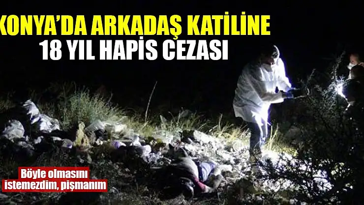 KONYA'da 2016 yılında dağlık arazide cesedi bulunan Yasin Kozan'ın (36) katil zanlısı arkadaşı Gökhan Yardım (31), 'kasten adam öldürme' suçundan 18 yıl hapis cezasına çarptırıldı.