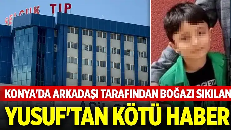 Konya'da okulda sınıf arkadaşı İ.Ç. (10) tarafından boğazının sıkılmasıyla fenalaşan ve kaldırıldığı hastanede yoğun bakıma alınan Yusuf T.'ten kötü haber geldi.