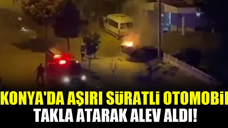 Konya'da aşırı süratli otomobil takla atarak alev aldı!