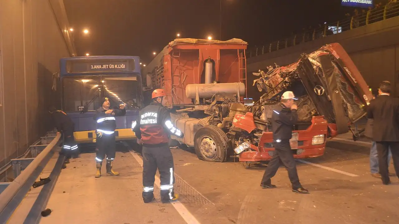 Kaza, merkez Karatay ilçesi Ankara yolu Büsan Alt Geçidinde meydana geldi. Edinilen bilgiye göre, 3. Hava Jet Üs Komutanlığına bağlı askeri bir otobüs iddiaya göre önünde giden bir aracın aniden yavaşlamasıyla sürücüsünün direksiyon hakimiyetini kaybetmesi sonucu yanından geçen Serdar P. (24) idaresindeki 42 DLB plakalı tırla çarpıştı. Kazada yaralanan tır şoförü olay yerine sevk edilen ambulansla hastaneye kaldırıldı. Yaralı sürücünün sağlık durumunun iyi olduğu belirtildi.