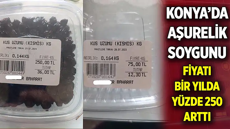 Konya'da bir kuruyemişçinin geçen 75 liradan sattığı kuş üzümünü bu sene 250 liradan satışa sunduğu ortaya çıktı. Bir yılda yüzde 250 oranında artış 'Aşurelik soygunu' yorumları yaptırdı.