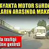 Konya'da ayakta motor sürdü, araçların arasında makas attı!