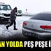 KONYA'nın Seydişehir ilçesinde kar yağışı nedeniyle buzlanan yolda peş peşe iki kaza meydana geldi.