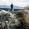Konya'nın Beyşehir ilçesinde tatlı su balığı avcıları, devam eden avlanma yasağında gölden hayalet ağları temizliyor.