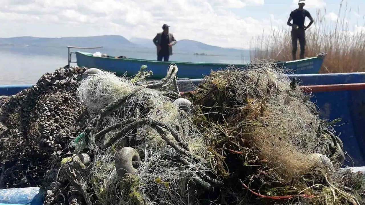 Balıkçı Musa Yılmaz da, çalışmalara kendisinin de teknesiyle katıldığını belirterek, "Gölde şu anda hayalet ağ temizleme işleriyle uğraşıyoruz. Bizi de görevlendirdiler. Bulanımız da oldu, bulamayanımız da oldu. Çünkü göl o kadar çok otlu ki, tabandan çıkarma şansımız da zor oluyor. Zor da olsa çalışmaları yürütüyoruz. Kayığımızın kancasını salıyoruz 8-10 metre aşağıya, takılan ağları kayığımızın içerisine doldurup kıyıya getiriyoruz" diye konuştu.