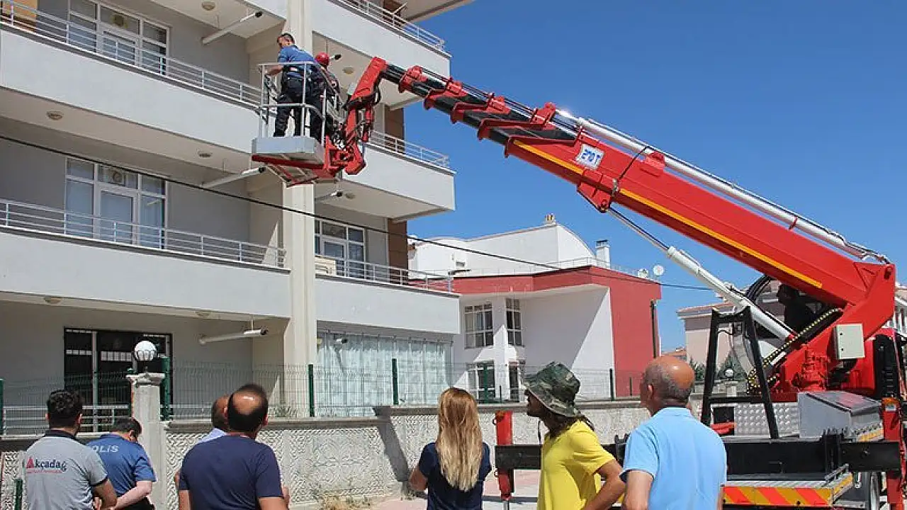 Konya'da balkonda mahsur kalan kediyi itfaiye ekipleri kurtardı