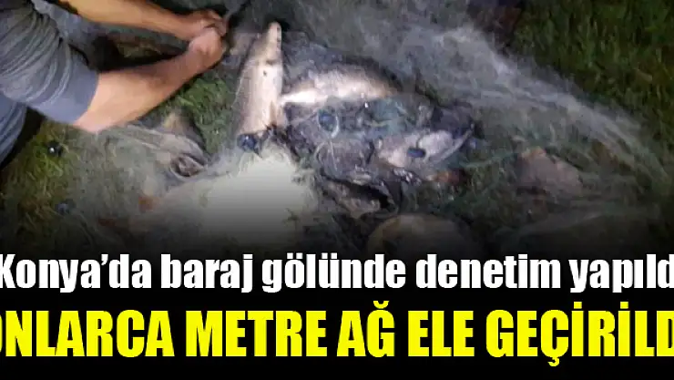 Konya'da baraj gölünde iftar ve sahur vakti arasında yapılan denetimlerde yasak olmasına rağmen kaçak balık avı yapmak için serildiği belirlenen onlarca metre ağ ele geçirildi.
