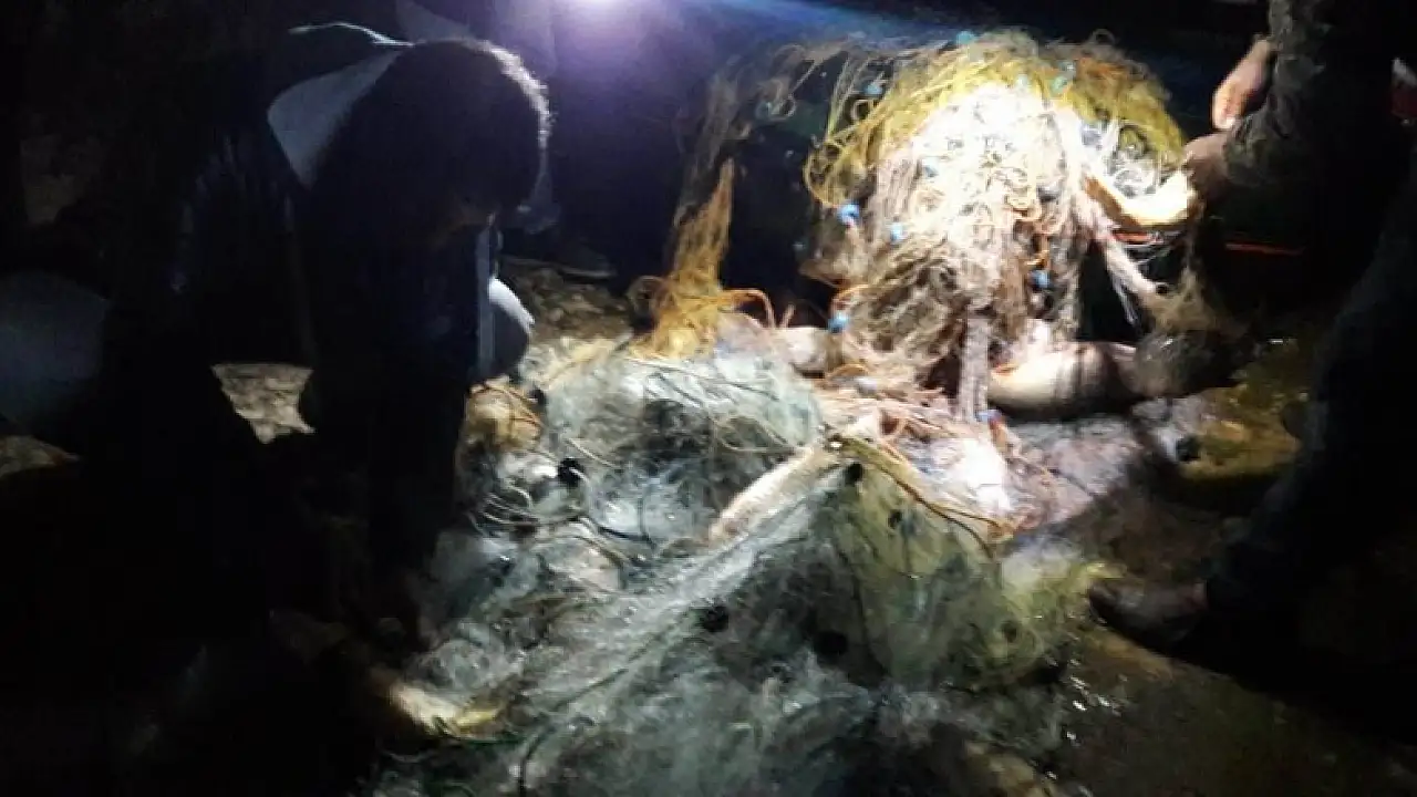 Konya'da ticari avcılığın yıl boyu yasak olduğu Altınapa Baraj Gölü'nde gece saatlerinde yapılan denetimlerde balık avı yapmak maksadıyla serildiği belirlenen 3 bin metre ağ ele geçirildi.