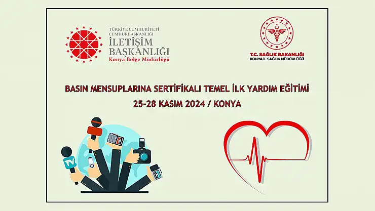Cumhurbaşkanlığı İletişim Başkanlığı Konya Bölge Müdürlüğü ve Konya İl Sağlık Müdürlüğü işbirliğiyle yürütülen proje kapsamında 25-28 Kasım 2024 tarihlerinde basın mensuplarına yönelik, 'Sertifikalı Temel İlk Yardım Eğitimi' programı düzenlenecek.