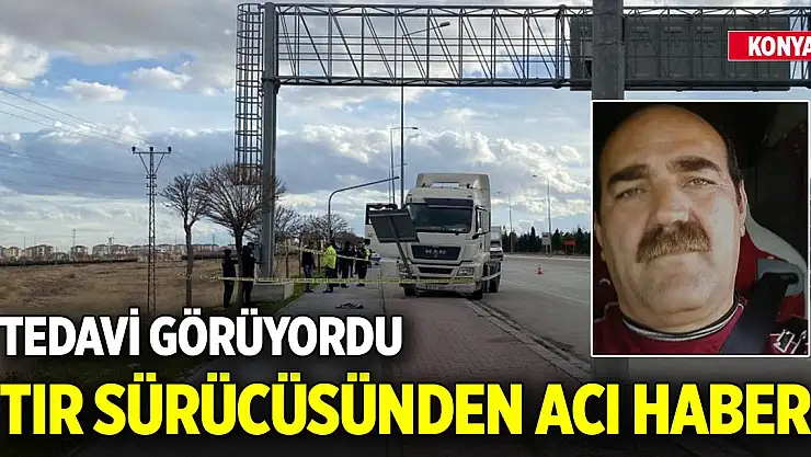 Konya'da dün meydana gelen olayda, kaldırıma park edilirken tırın çarparak devirdiği tabelanın başına çarpması sonucu ağır yaralanan tır sürücüsü kurtarılamayarak hayatını kaybetti.
