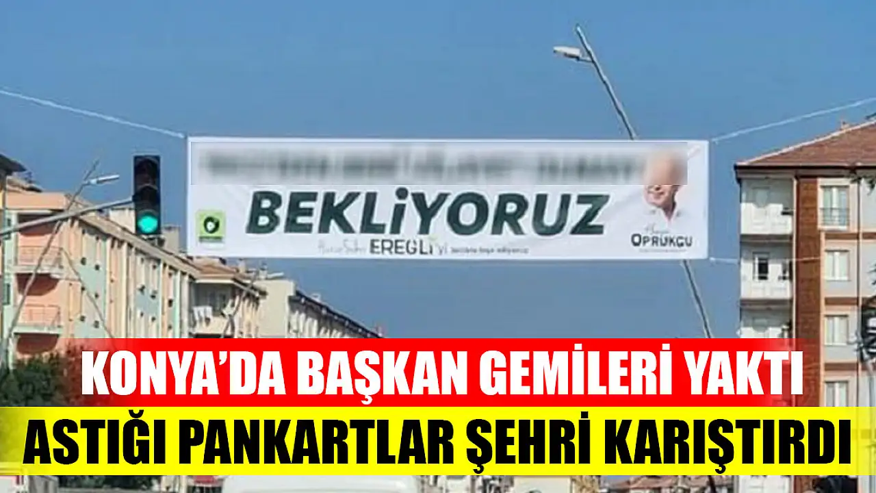 Konya'da başkan gemileri yaktı Astığı pankartlar şehri karıştırdı