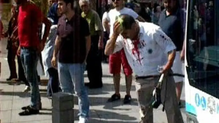 Belediye otobüsü şoförü, şehir trafiğini ve seferi aksatmamak için kan revan içinde o halde direksiyonun başına geçerek yoluna devam etti.