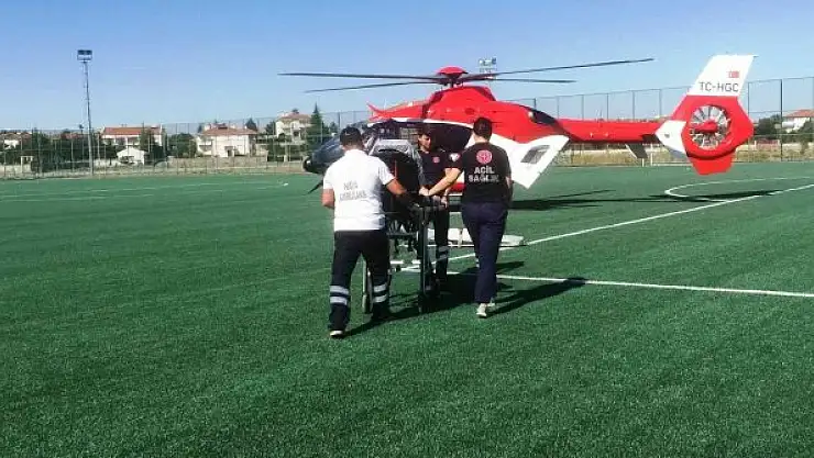 Konya'nın Kulu ilçesinde beyin kanaması geçiren hasta, helikopter ambulansla hastaneye sevk edildi.