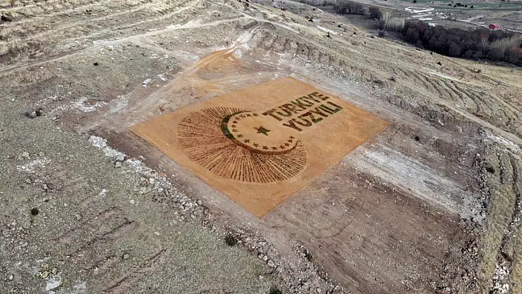 Konya'da binlerce fidanla 'Türkiye Yüzyılı' logosu oluşturuldu