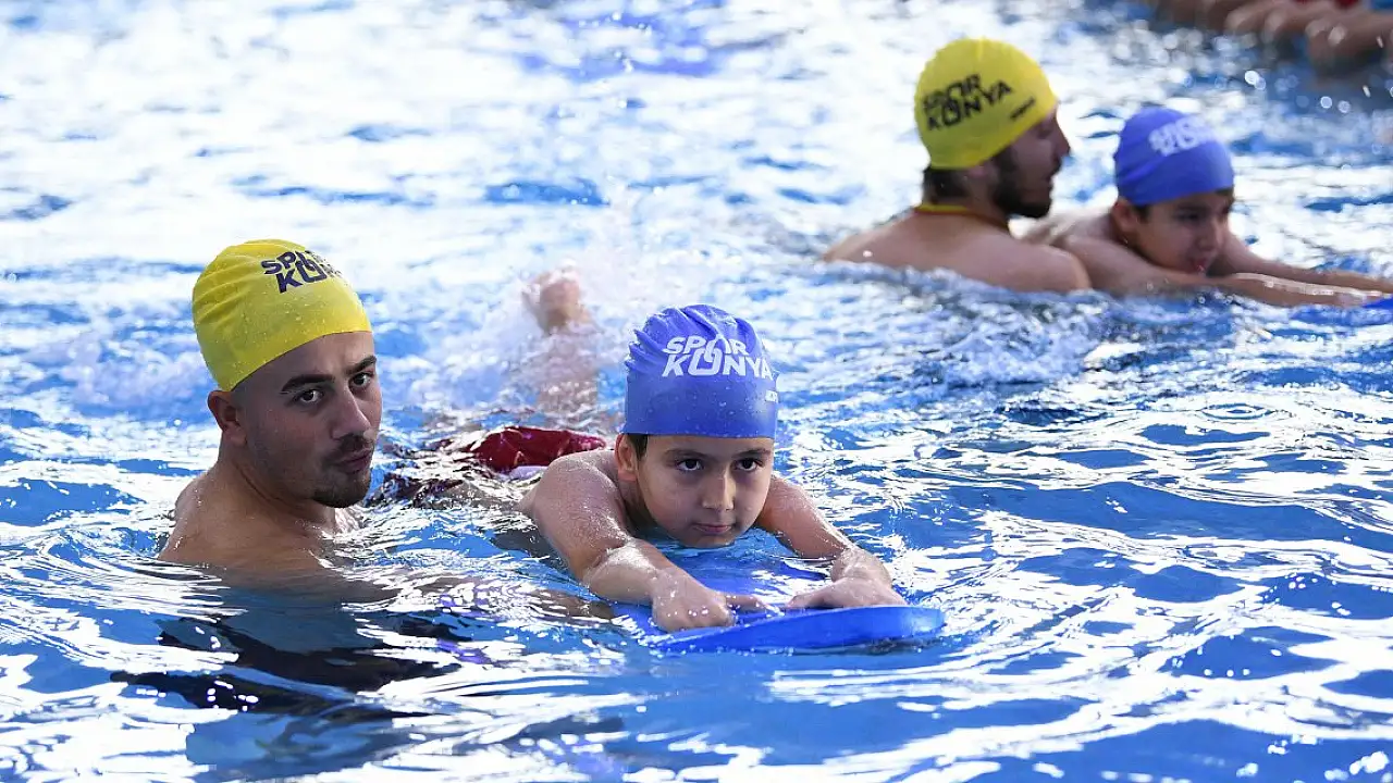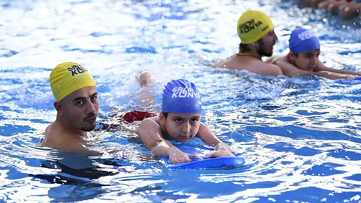 Konya Büyükşehir Belediyesinin, öğrencilere temel yüzme becerileri kazandırılmasını amaçlayan 'Yüzme Bilmeyen Kalmasın' projesinde dördüncü dönem eğitimleri devam ediyor.