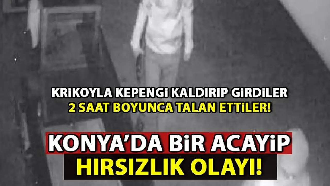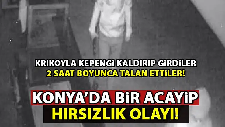 Konya'da yüzleri maskeli iki soyguncu, kriko ile kepengi kaldırıp, sürünerek içeri girdikleri marketten 40 bin liralık soygun gerçekleştirdi. Yaklaşık 2 saat süren soygun işyerinin güvenlik kameraları tarafından saniye saniye kaydedildi.