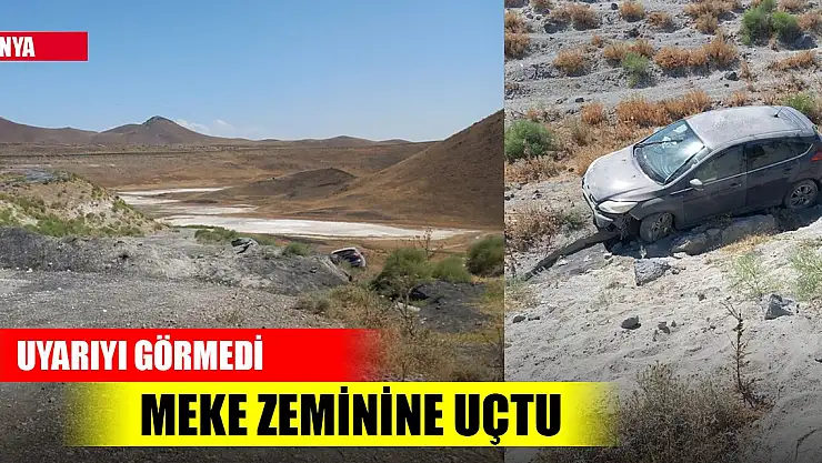 Alınan bilgiye göre, Meke Gölü girişinde meydana gelen trafik kazasında, 35 BED 502 plakalı aracın sahibi Vahdettin Yavaş, Meke Gölü civarında ailesiyle çıktığı gezide, kullanılması yasak olan ve girişte bulunan yasak yazısını görmeyerek girdiği yolda aracı gölün tamamen kurumuş zeminine yuvarlandı.