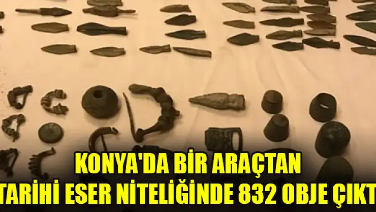 Konya'da tarihi eser operasyonu düzenlendi. Araçtan çeşitli dönemlere ait tarihi eser niteliği taşıyan 832 obje ele geçirildi, 1 şüpheli gözaltına alındı.