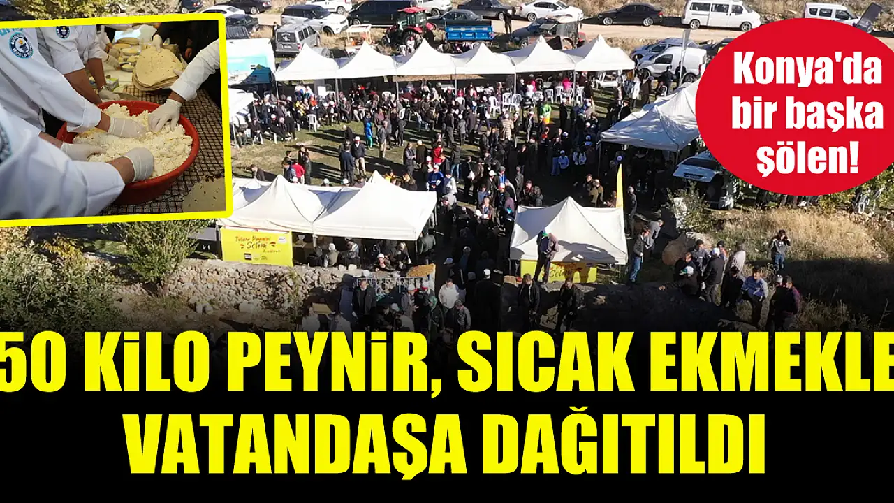 Konya'da bir başka şölen! 50 kilo peynir, sıcak ekmekle vatandaşa dağıtıldı