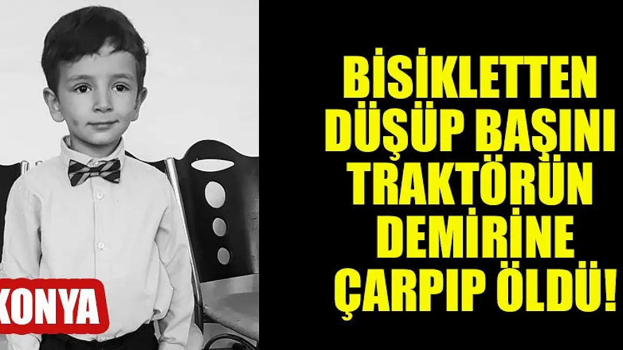 Konya'nın Hüyük ilçesinde 5 yaşındaki ana sınıf öğrencisi, kullandığı bisikletinin devrilmesi sonucu park halindeki traktörün demirine başını çarparak hayatını kaybetti.