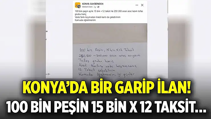 Konya'da bir garip ilan! 100 bin peşin 15 bin x 12 taksit…