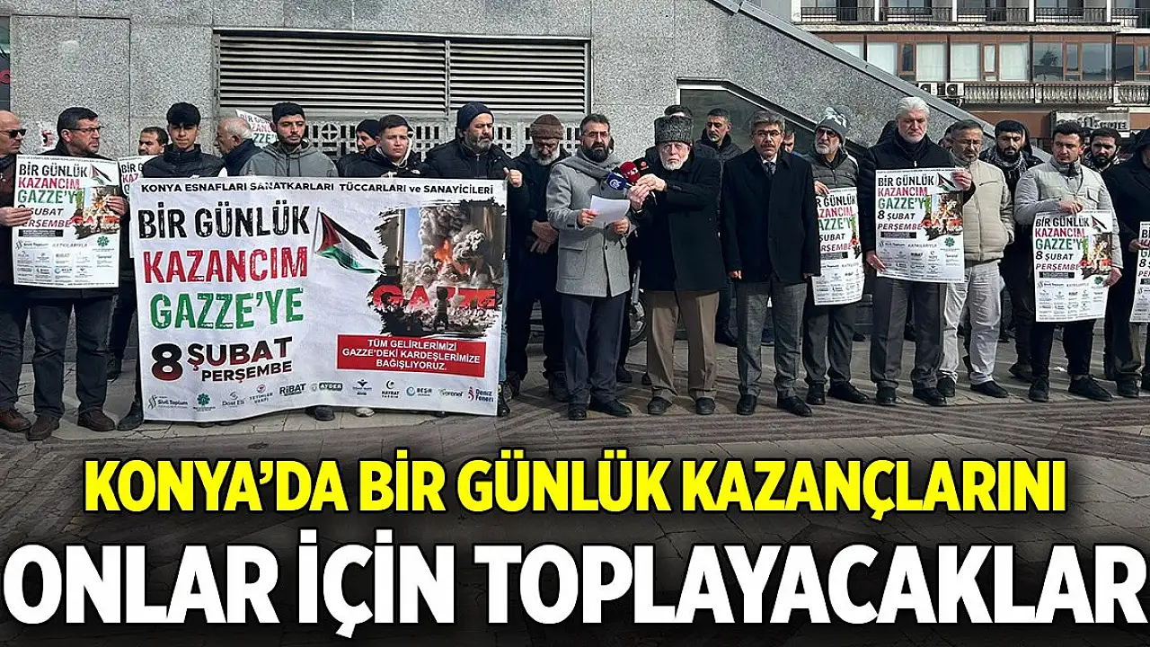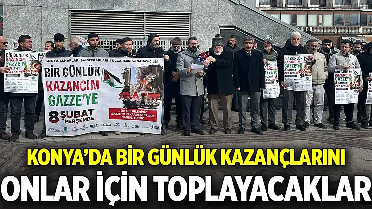 Konya STK Platformu ile Konya Esnaf ve Sanatkarlar Odaları Birliği'nin organize ettiği, ulusal ve yerel yardım kuruluşlarının birlikteliğiyle "Bir Günlük Kazancım Gazze'ye" kampanyası başladı. Kampanya 8 Şubat Perşembe günü son bularak, gelirlerin tamamı Gazze’ye bağışlanacak.