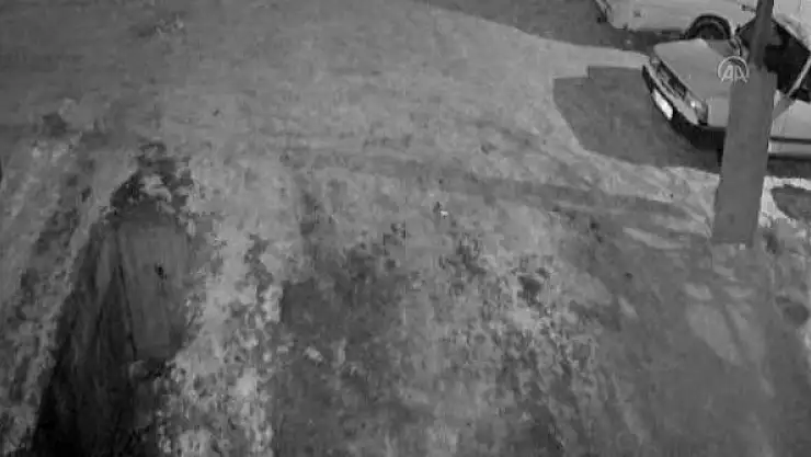 Çukurdan kendi imkanlarıyla çıkan A.Ö'nün düşme anını iş yerinin güvenlik kamerası kaydetti.