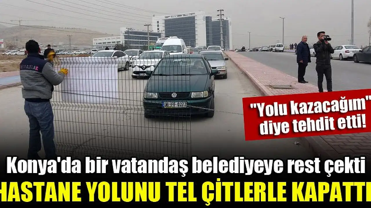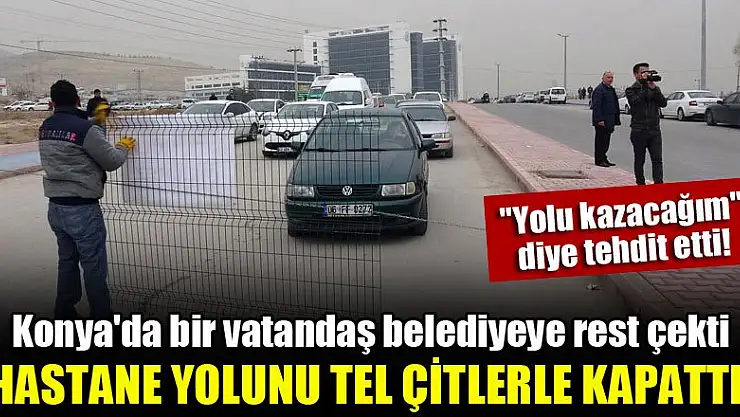 Konya'da bir vatandaş belediyeye rest çekti, hastane yolunu tel çitlerle kapattı!
