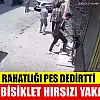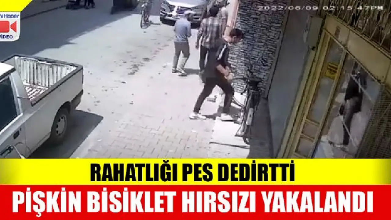 Konya'da iş yerinin önündeki bisikletin çalınma anı saniye saniye güvenlik kameralarına yakalandı. Görüntülerden daha öncede hırsızlık suçundan kaydı olan şüpheliyi tespit eden polis, hırsızı kısa sürede yakaladı.