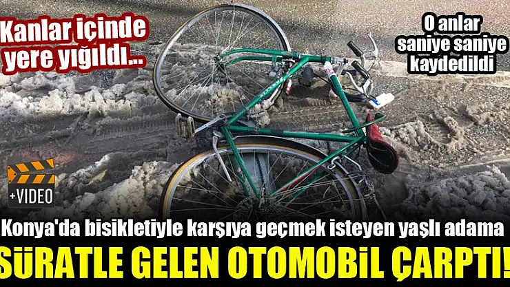 Konya'da bisikletiyle karşıya geçmek isteyen yaşlı adama süratle gelen otomobil çarptı! Kanlar içinde yere yığıldı...VİDEO