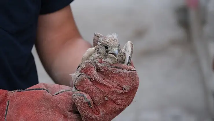 Apak Mahallesi'nde yaşayan Kübra Arslan ve Büşra Gümüşsoy, bahçelerinde kerkenez yavrusunu görünce durumu zabıta ekiplerine bildirdi.