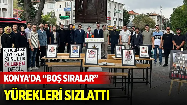 AK Parti Konya İl Gençlik Kolları Başkanı Av. İbrahim Kelek, yaptığı konuşmada şu ifadelere yer verdi; “Katil İsrail, çocukların geleceğini hedef aldı. Çocukların dünyası yok edildi. Bizler boş sıraların başındayız.