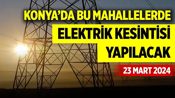 Konya'da bu mahallelerde elektrik kesintisi yapılacak (23 Mart 2024)