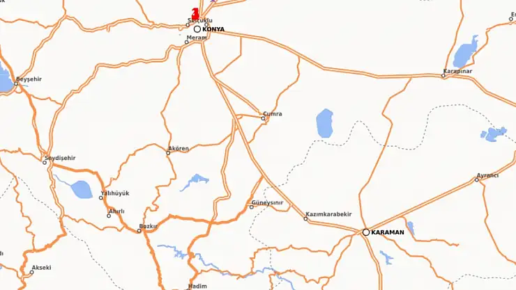 1- Konya-Karaman yolunun 10-17.km.leri arasında üstyapı yenileme çalışmaları nedeniyle ulaşım bölünmüş yolun bir bölümünden iki yönlü olarak sağlanmaktadır.