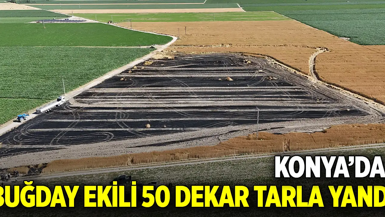 Konya'nın Karapınar ilçesinde buğday ekili 50 dekar tarla yandı.