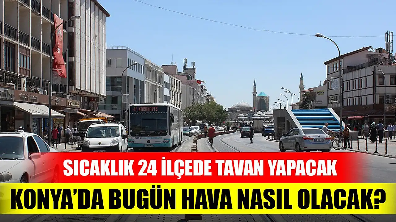 Meteoroloji 8. Bölge Müdürlüğü Konya için bugünkü hava durumu tahminlerini paylaştı. Hava sıcaklığında önemli bir değişiklik beklenmezken sıcaklıklar 24 ilçede 30 derenin üzerinde olacak.