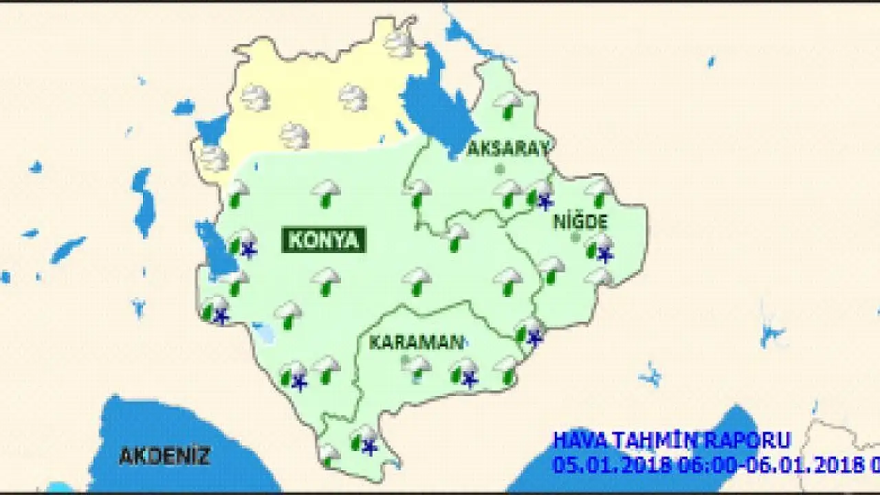 Meteoroloji'den alınan bilgilere göre Konya'da bugün yağmur etkili olacak. Yarından itibaren ise yoğun sis olması bekleniyor. 6 Ocak Cumartesi günü etkili olmaya başlayacak olan sisli hava 9 Ocak Salı gününe kadar devam edecek.