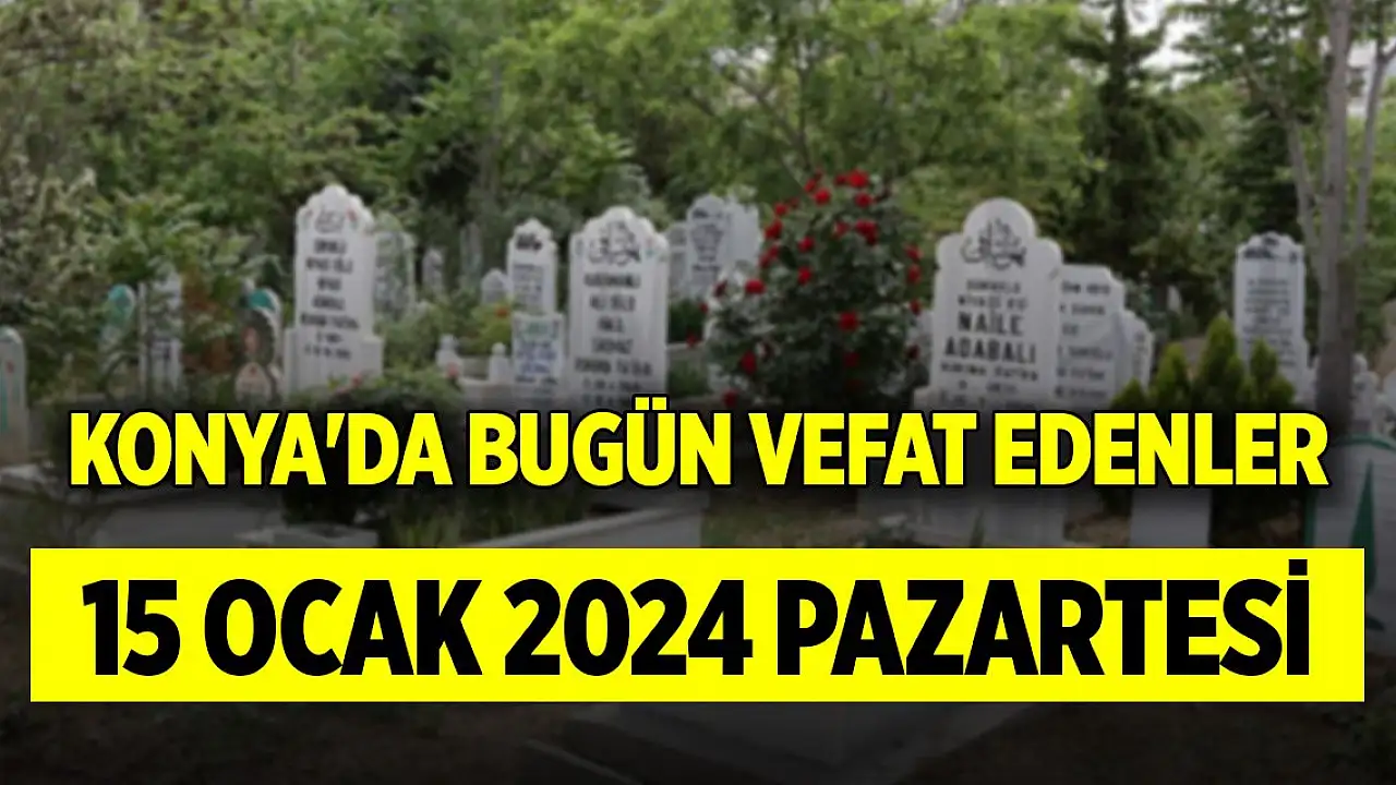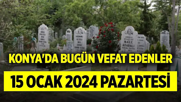 Konya'da bugün (15 Ocak 2024 Pazartesi) vefat edenler ve defnedilenler kimler? Konya'da vefat edenlerin isimleri ve defnedildikeri mezarlıkların bilgisi haberimizde...