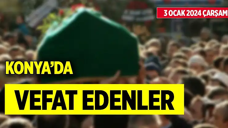 Konya'da bugün (3 Ocak 2024 Çarşamba) vefat edenler ve defnedilenler kimler? Konya'da vefat edenlerin isimleri ve defnedildikeri mezarlıkların bilgisi haberimizde...