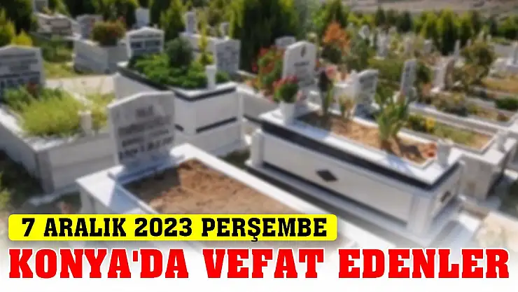 Konya'da bugün (7 Aralık 2023 Perşembe) vefat eden ve defnedilenler kimler? Konya'da vefat edenler, bugün defnedilenler ve defnedildikeri mezarlıkların bilgisi haberimizde...